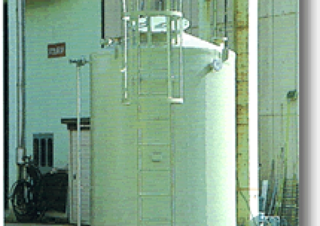 酸・アルカリの耐薬品性に優れた硬質塩ビ板(JISK-6745 1種1号)と高強度で耐食性のあるHLU-FRP (ビニルエステル樹脂+ガラスチョップドストランドマット+ガラスロ ーピングクロス)の複合により、FRPで耐食性に不安のある内容液も耐食的にクリアー することができました。